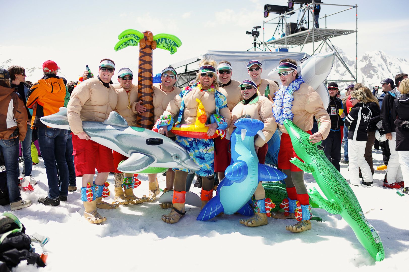 Die ausgestellten Aufnahmen zeugen von den Recherchen des Fotografen, der seit über 30 Jahren die verschiedenen Aspekte des Tiroler Skitourismus dokumentiert. In Ischgl begab sich Hechenblaikner in die Mitte feiernder Touristinnen und Touristen und verewigte mit seiner Kamera Partymomente, die oftmals von Chaos und Exzessen geprägt waren. Zugleich dokumentierte er auch die Szenen im Hintergrund: Skianlagen, Neubauten und Nachtlokale.